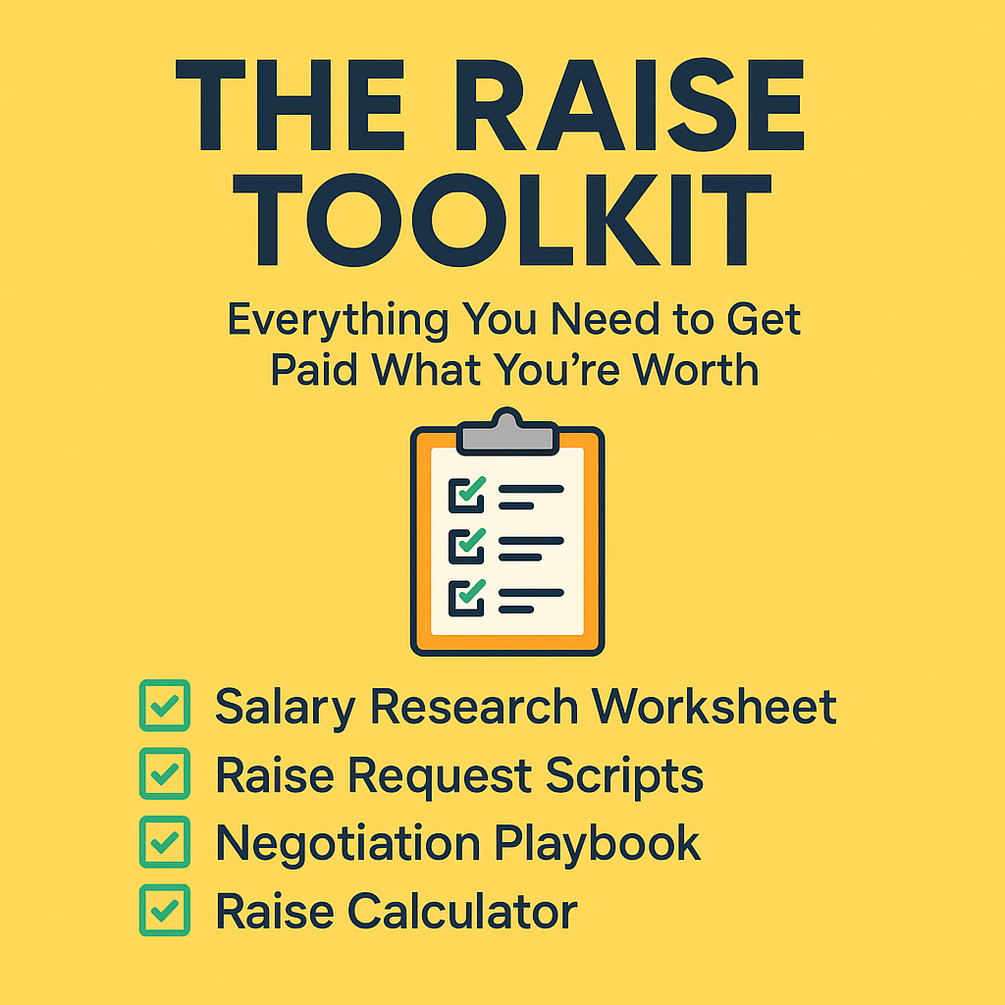 The Raise Toolkit gives you every asset you need to confidently ask for (and win) the raise you deserve — without overthinking, overexplaining, or settling for less.